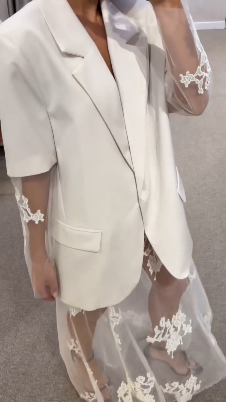 Women's Lapel Suit Lace Fake Two-piece Casual Dress
