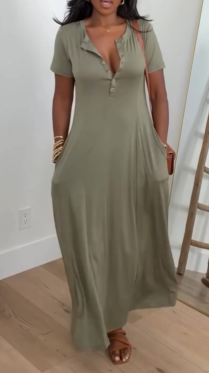Ladies' Round Neck Solid Color Slim Casual Dress