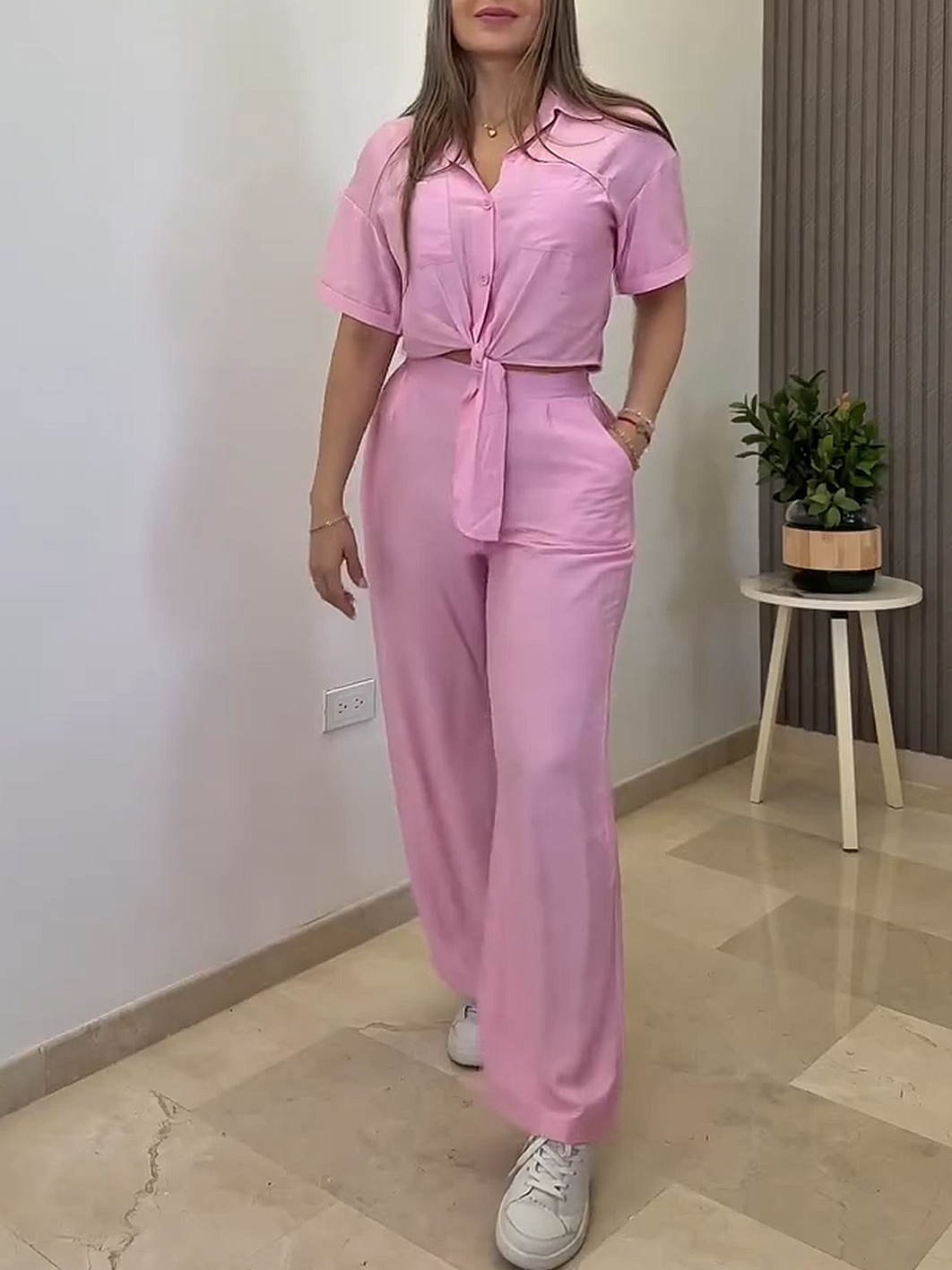 Women'S Solid Color Sleeveless Top And Pocket Pants Set