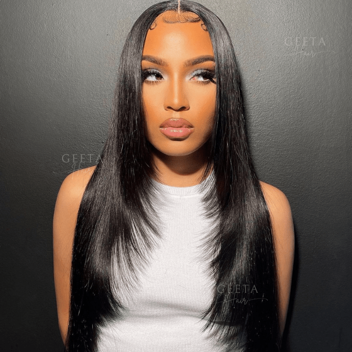 Geetahair Upgrade HD Lace Straight Wig Crystal Clear Lace Human Hair Wigs With Pre Plucked Natural Hairline