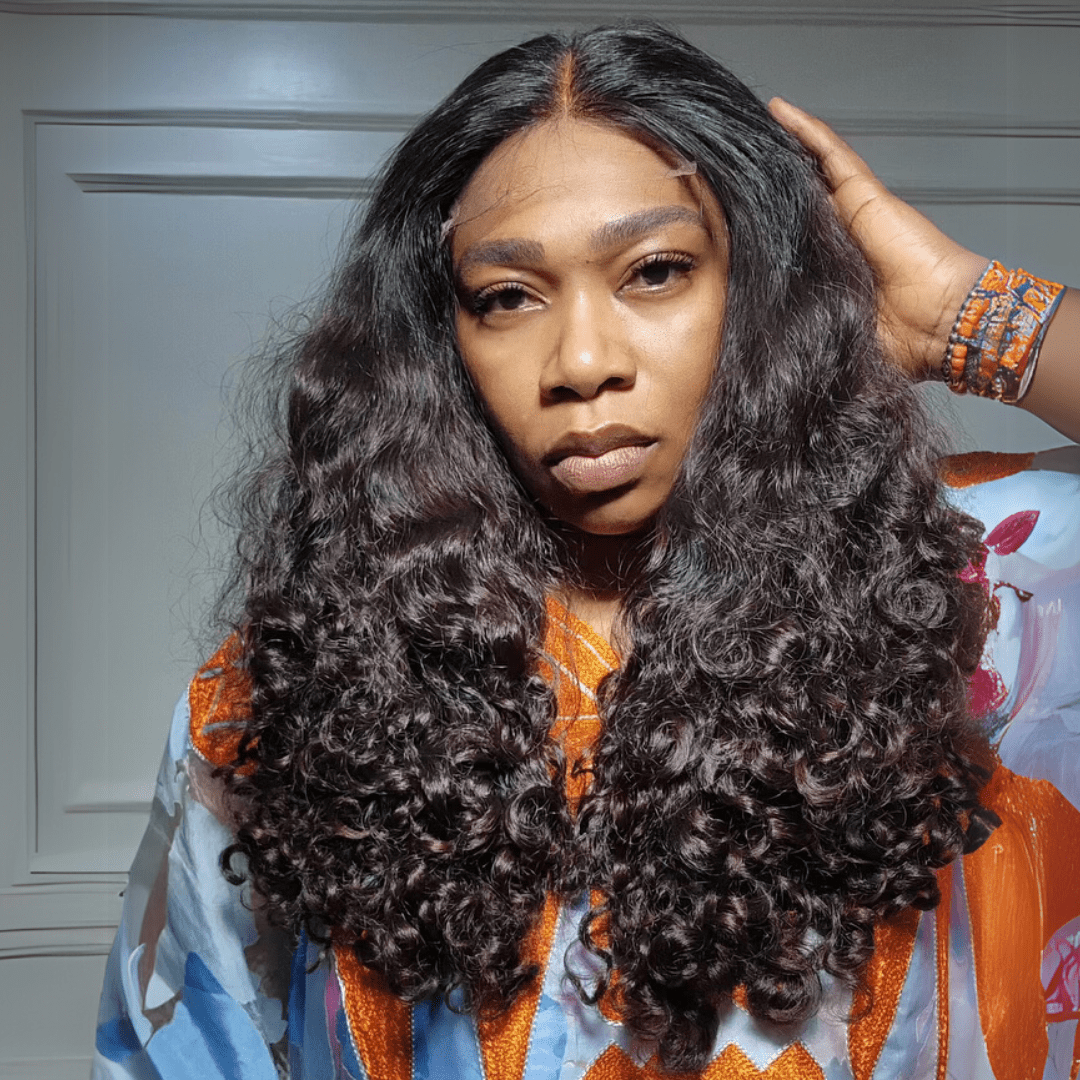Geeta 300% Density Put On And Go Glueless Spanish Curly 13x4 Lace Front Pre Plucked 100% Human Hair Wigs