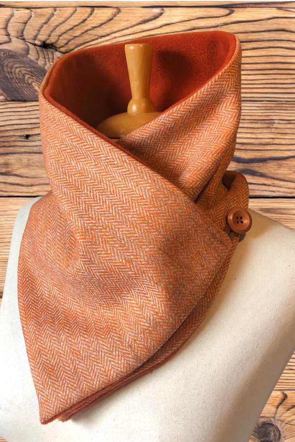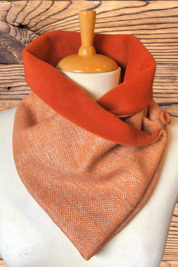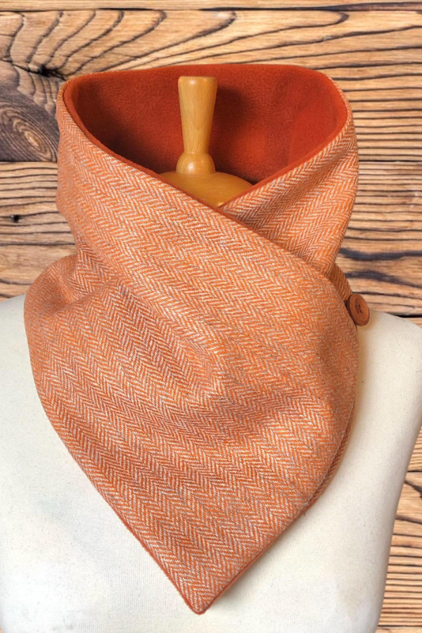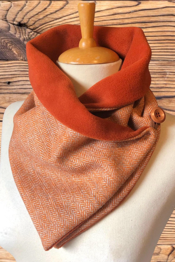 This scarf combines comfort and style, with an exceptionally soft and warm lining. Rustic wooden buttons secure it firmly, adding to its charm.