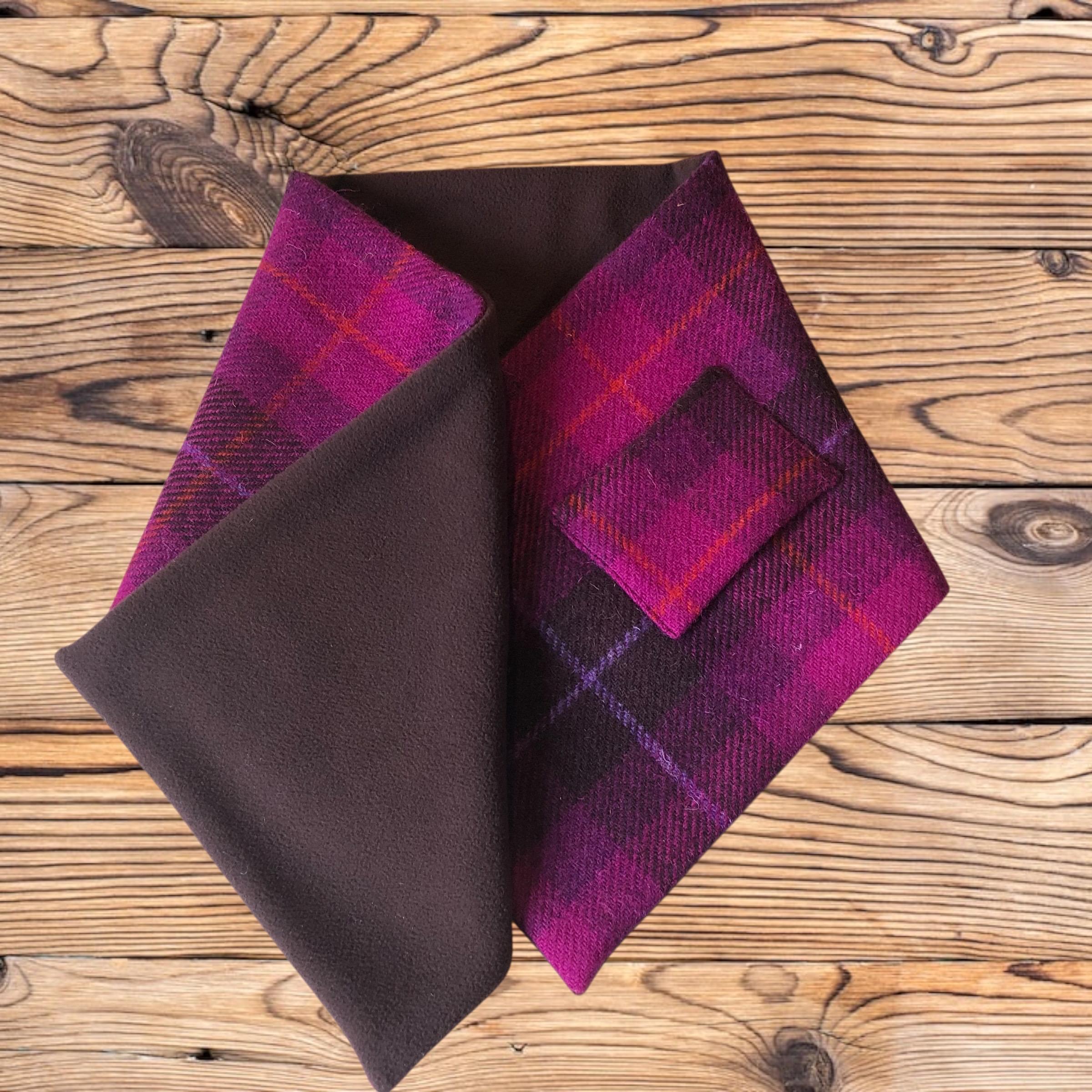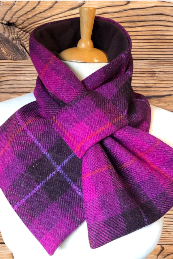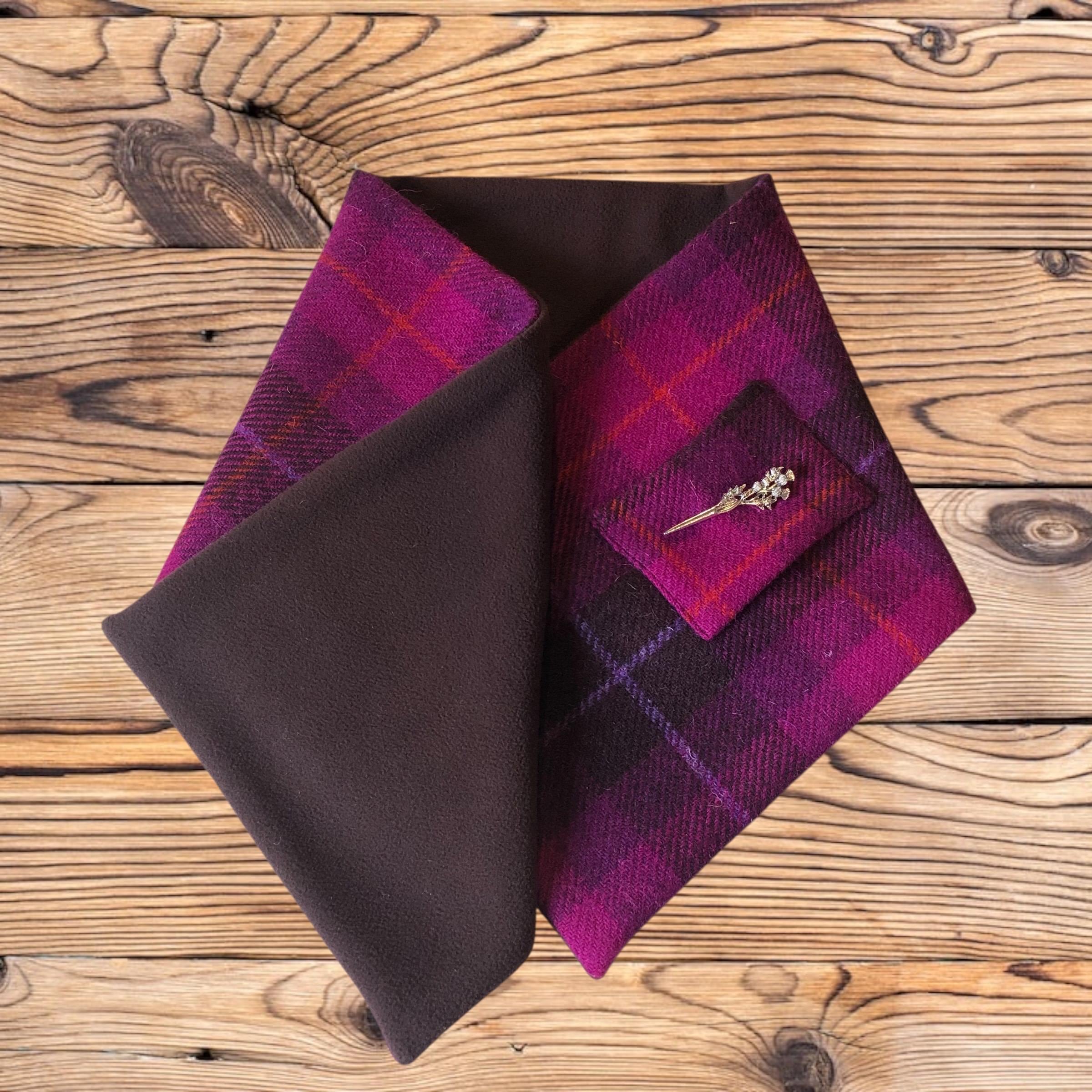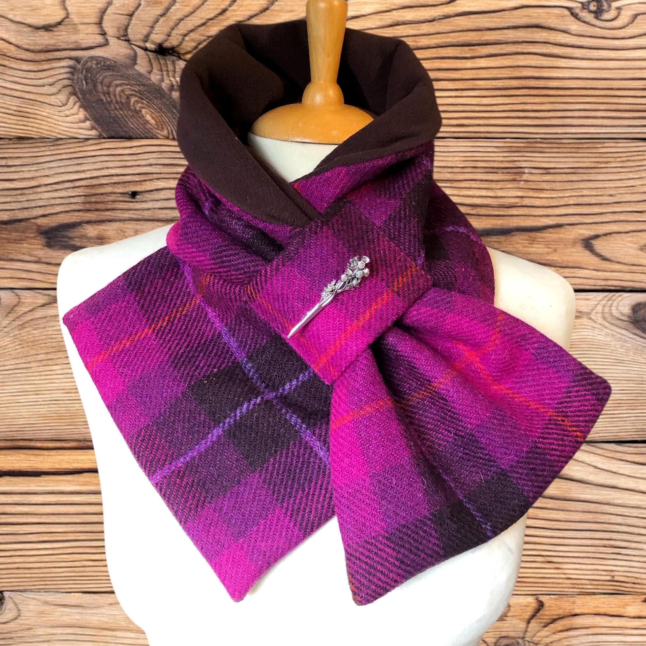 This scarf can be worn in two ways: one with the lining showing, and the other with the lining hidden as shown in the photo. Each brooch is unique and removable, allowing it to be worn on other clothing.