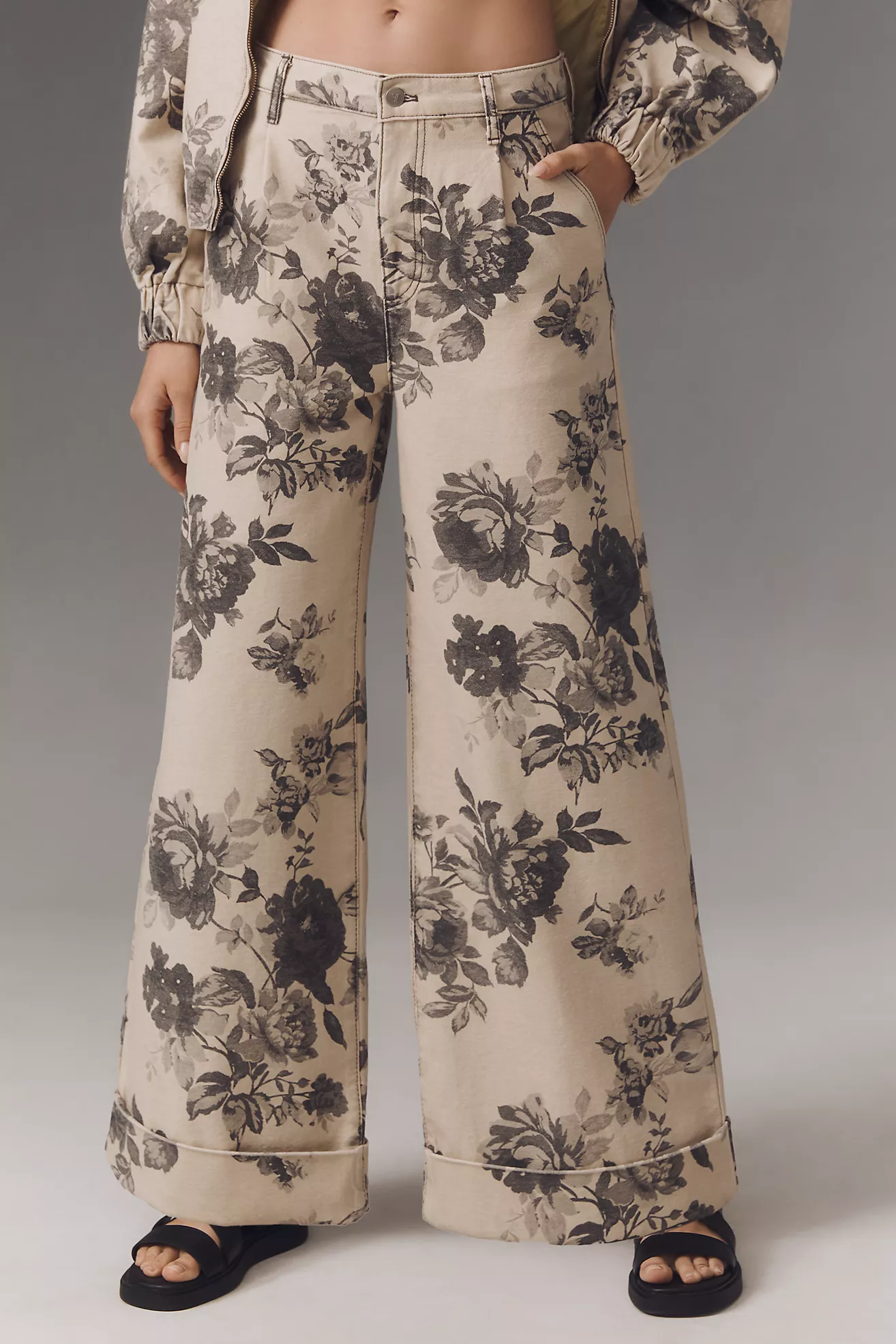 The Leon Double Hem High-Rise Wide-Leg Cuffed Jeans by Pilcro: Floral Edition