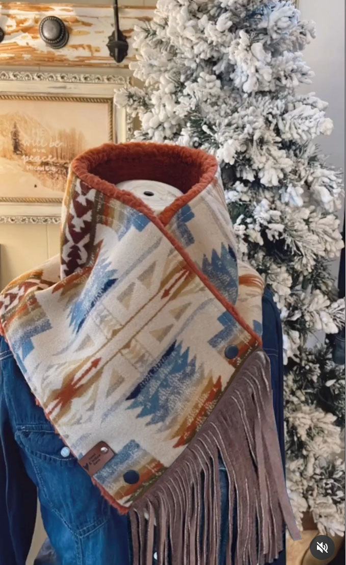 This women’s cowl makes the perfect western accessory for equestrians and outdoorsy women who love southwestern style and are looking for an alternative to a traditional scarf or wild rag, without the bulk.