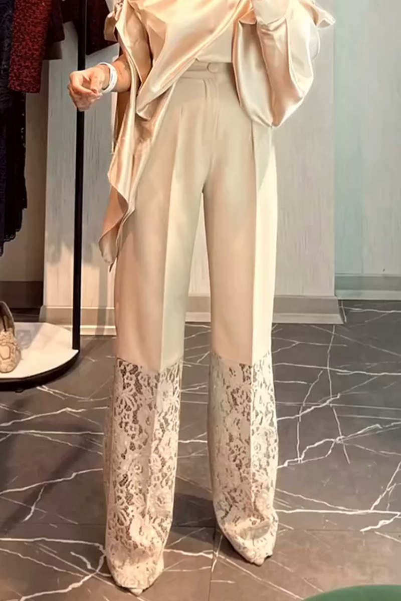 Women's Elegant Solid Color Lace Patchwork Trousers