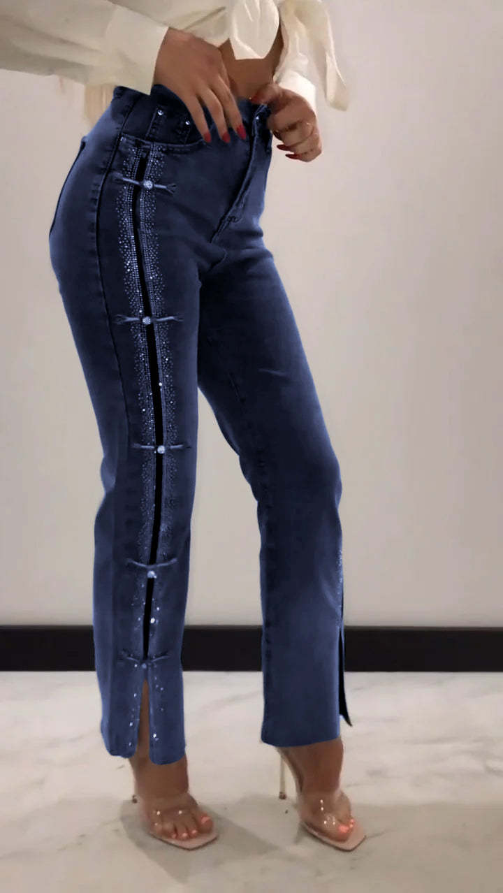 Women's Hot Diamond Patchwork Design Slit Slim Jeans
