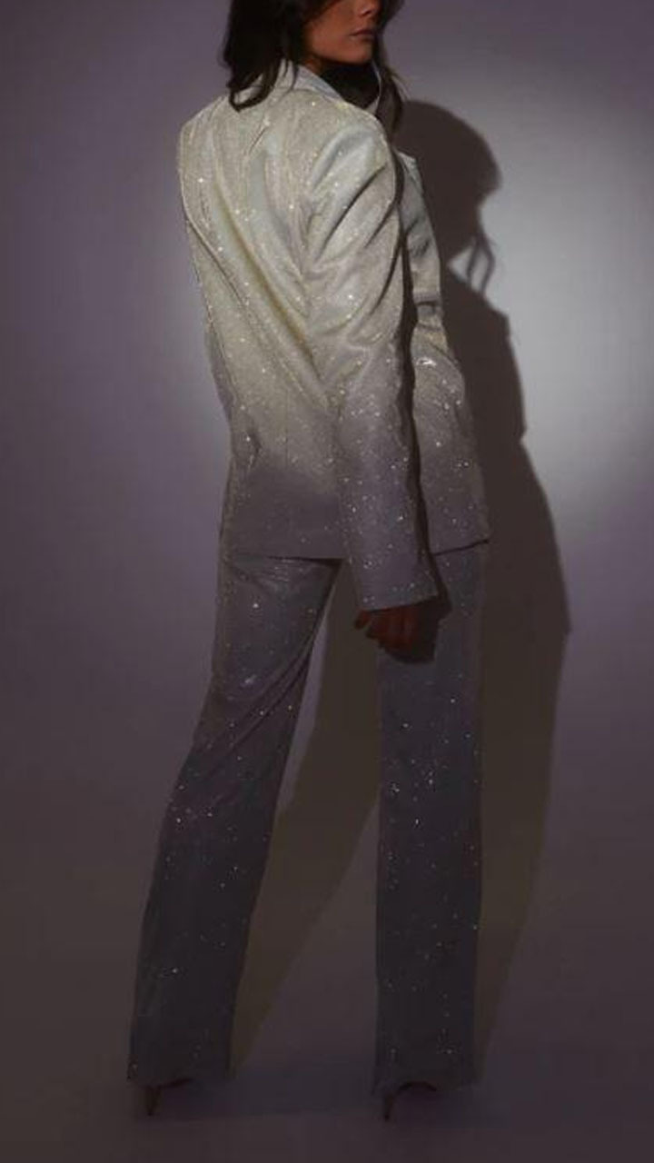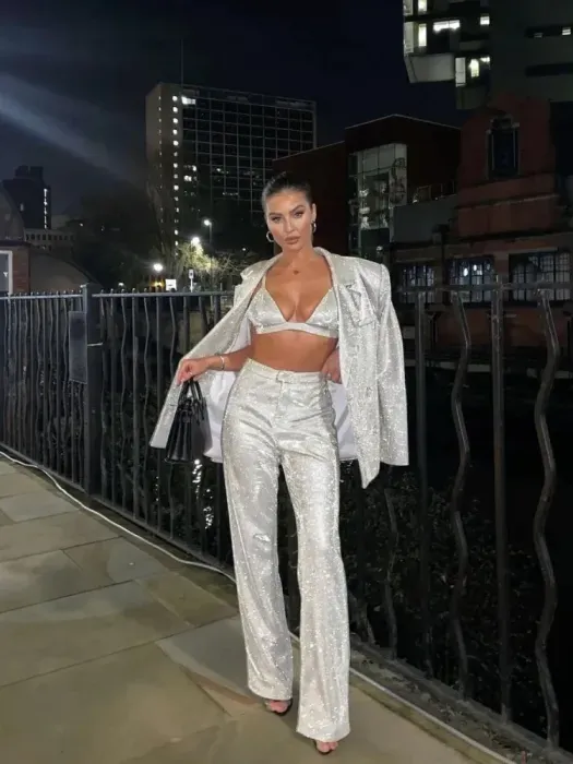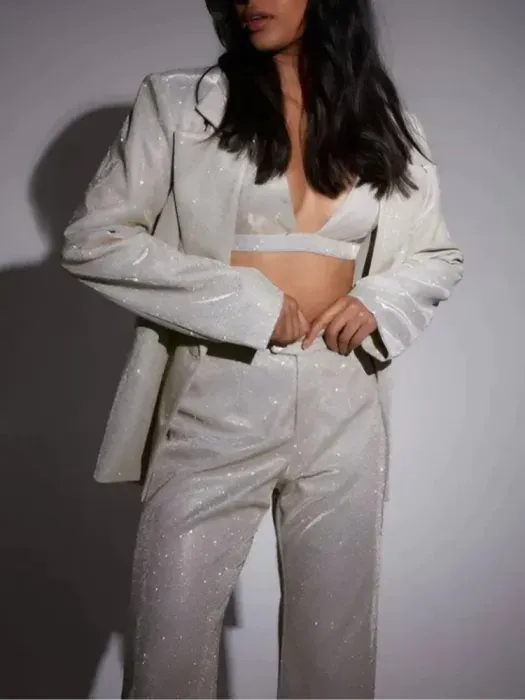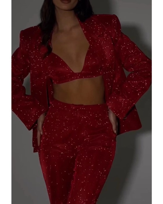 Women's Spring/Summer Sparkling Elegant Party Bra Blazer And Pant 3pcs Set